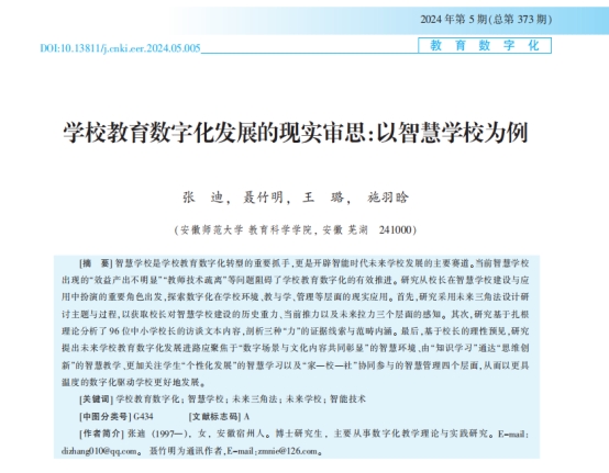 张迪、聂竹明、王璐、施羽晗:学校教育数字化发展的现实审思:以智慧学校为例