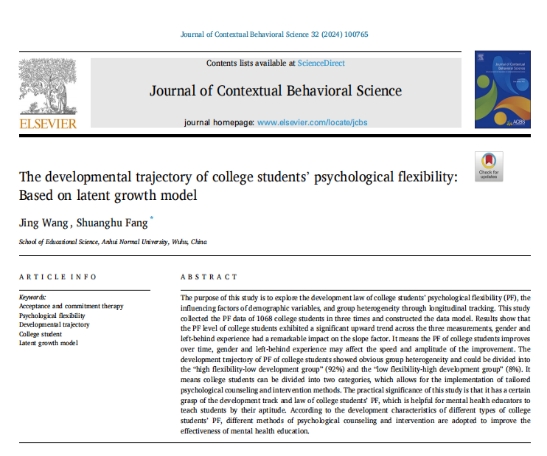 Jing Wang , Shuanghu Fang: The developmental trajectory of college students psychological flexibility: Based on latent growth model