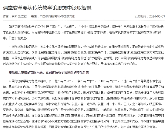 李卯、刘立德:课堂变革要从传统教学论思想中汲取智慧