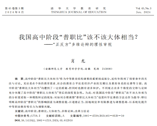 肖龙:我国高中阶段“普职比”该不该大体相当?——“正反方”多维论辩的理性审视