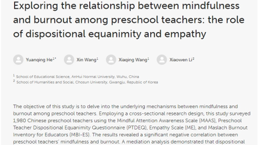 Yuanqing HeXin WangXiaqing WangXiaowen LiExploring the relationship between mindfulness and burnout among preschool teachers: the role of dispositional equanimity and empathy