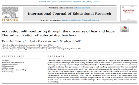 Tien-Hui Chiang, Lydia Osarfo Achaa, Stephen J Ball: Activating self-monitoring through the discourse of fear and hope: The subjectivation of enterprising teachers