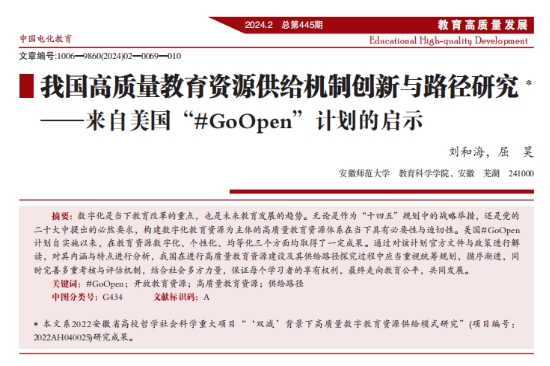 刘和海、屈昊:我国高质量教育资源供给机制创新与路径研究 ——来自美国“#GoOpen”计划的启示