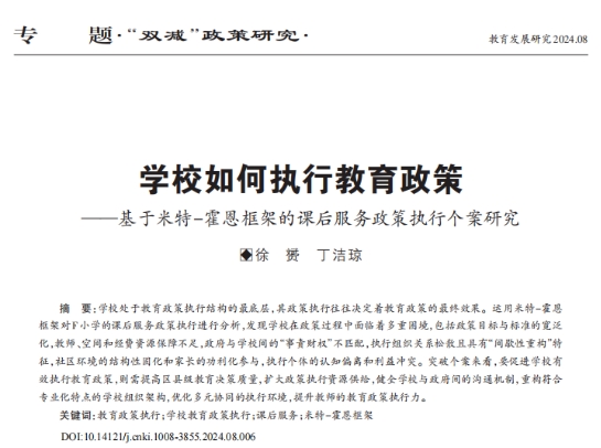 徐赟、丁洁琼:学校如何执行教育政策——基于米特-霍恩框架的课后服务政策执行个案研究