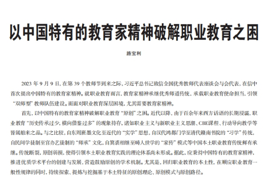 路宝利:以中国特有的教育家精神破解职业教育之困