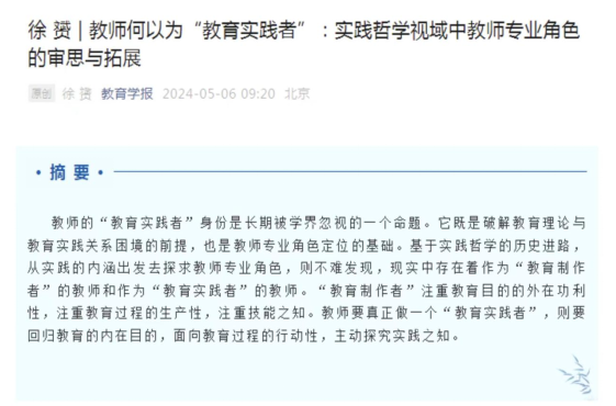 徐赟:教师何以为“教育实践者”:实践哲学视域中教师专业角色的审思与拓展