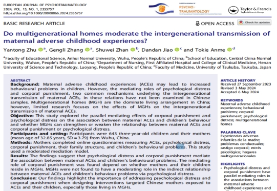 Yantong Zhu, Gengli Zhang, Shuwei Zhan, Dandan Jiao and Tokie Anme: Do multigenerational homes moderate the intergenerational transmission of maternal adverse childhood experiences?