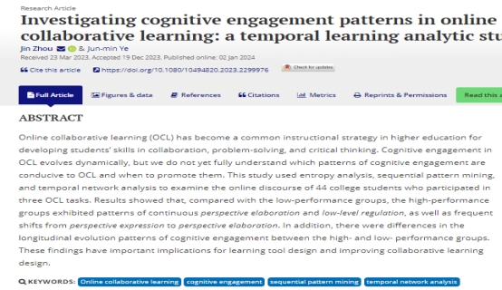 Jin Zhou, Jun-min YeInvestigating cognitive engagement patterns in online collaborative learning: a temporal learning analytic study