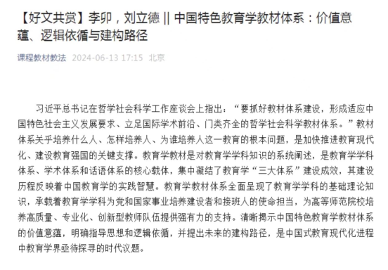 李卯、刘立德:中国特色教育学教材体系:价值意蕴、逻辑依循与建构路径