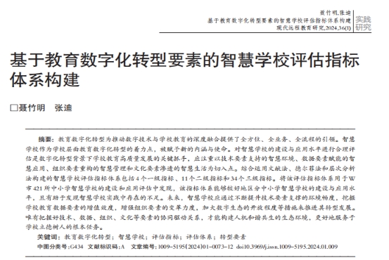 聂竹明、张迪:基于教育数字化转型要素的智慧学校评估指标体系构建
