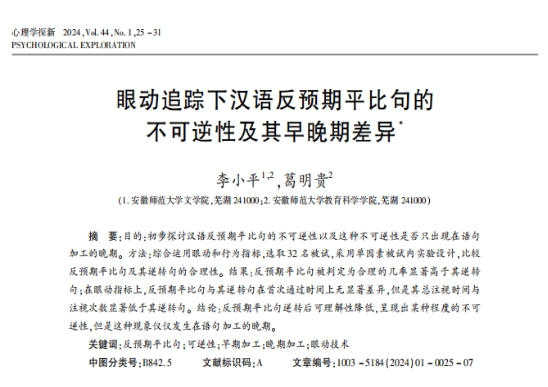 李小平、葛明贵:眼动追踪下汉语反预期平比句的不可逆性及其早晚期差异