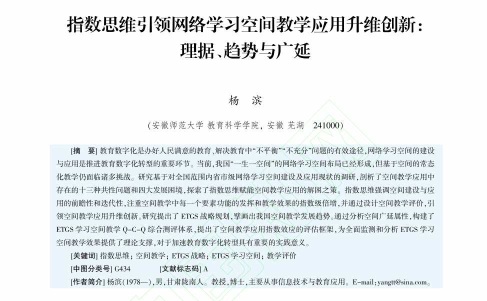 杨滨:指数思维引领网络学习空间教学应用升维创新:理据、趋势与广延