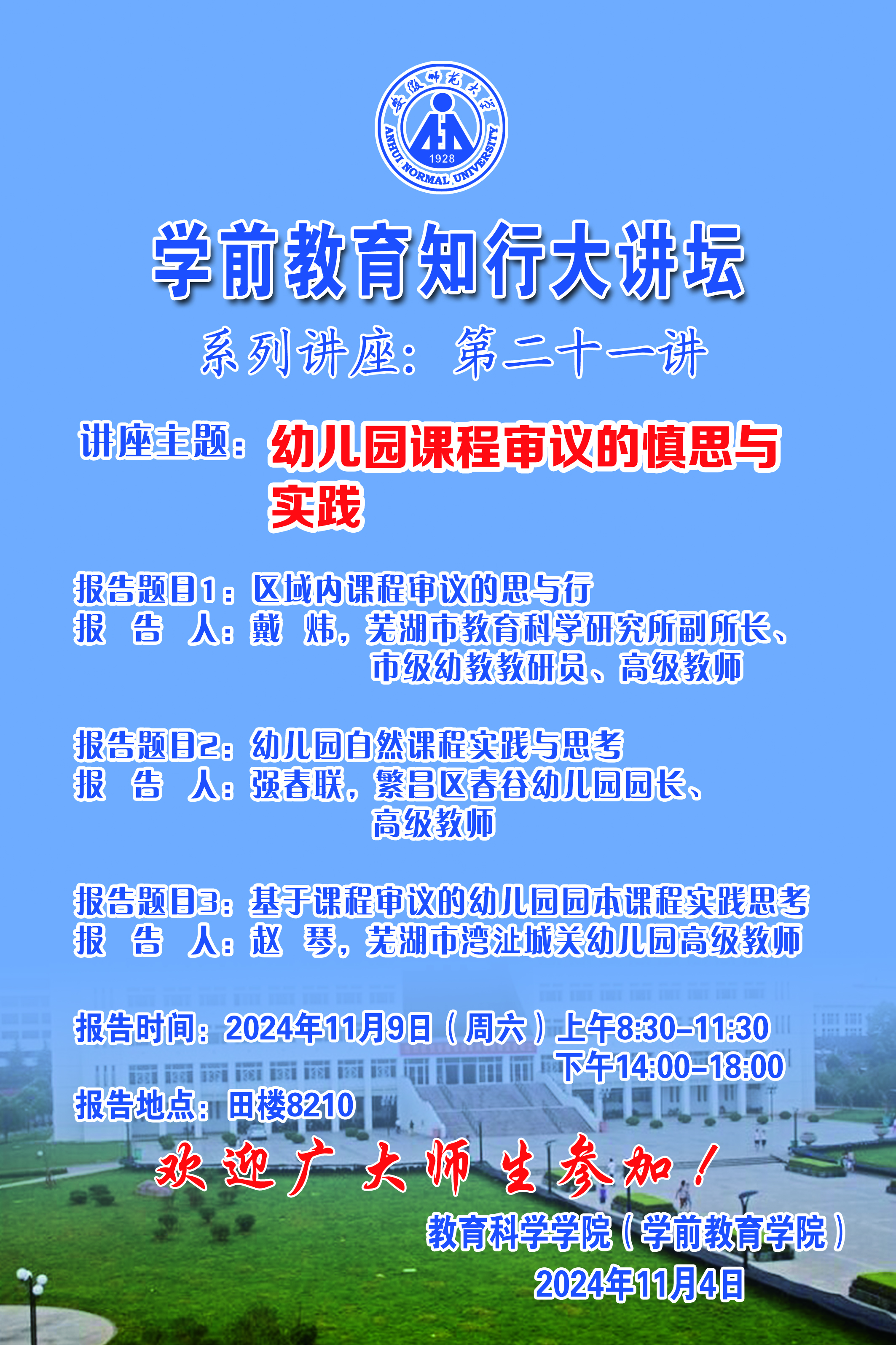 【学术预告】学前教育知行大讲坛第二十一讲——幼儿园课程审议的慎思与实践