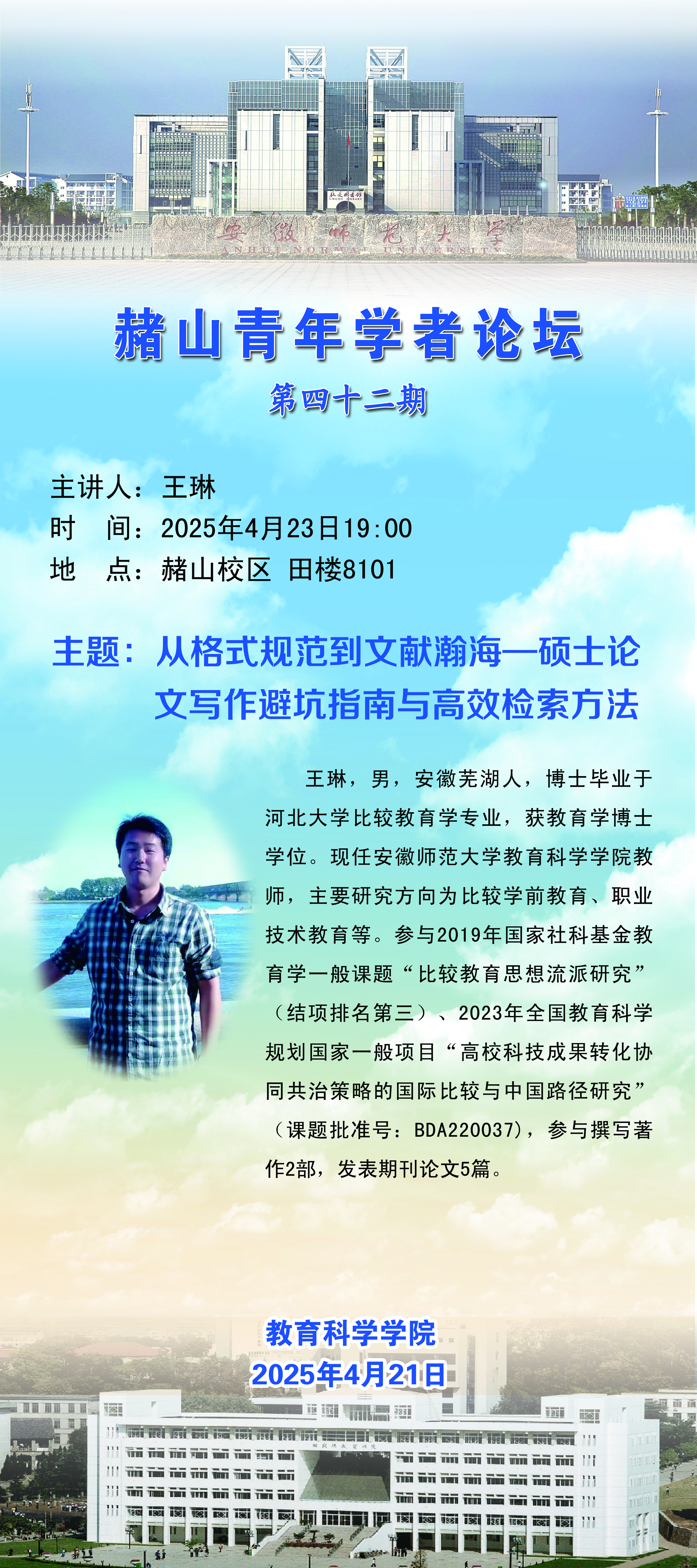【学术预告】赭山青年学者论坛第四十二期——王琳:硕士论文写作避坑指南与高效检索方法