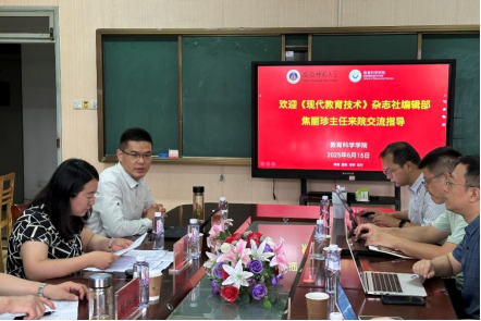 为进一步提高教育数字化转型背景下青年教师的科研能力,6月15日上午,国内知名期刊《现代教育技术》编辑部主任焦丽珍应邀莅临我院,在408会议室与教育技术学专业部分教师进行学术交流。院长吴文涛教授代表学院对焦丽珍主任的到访表示热烈欢迎,并简要介绍了学院在学科建设、科研发展等方面的最新动态。刘和海、杨滨、肖文、白倩、徐刘杰、周进等教师参加了本次活动。