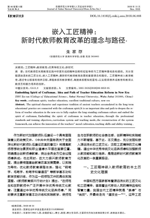 朱家存: 嵌入工匠精神:新时代教师教育改革的理念与路径