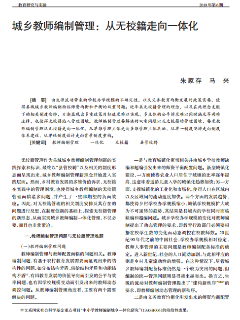 朱家存,马兴:城乡教师编制管理:从无校籍走向一体化