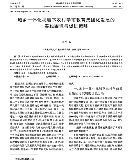 张更立:城乡一体化视域下农村学前教育集团化发展的实践困境与促进策略