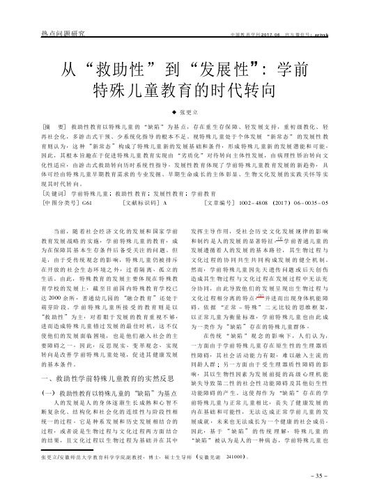 张更立:从“求助性”到“发展性”:学前特殊儿童教育的时代转向