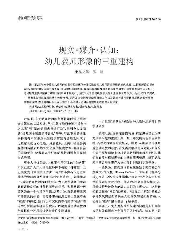吴文涛:现实·媒介·认知:幼儿教师形象的三重建构