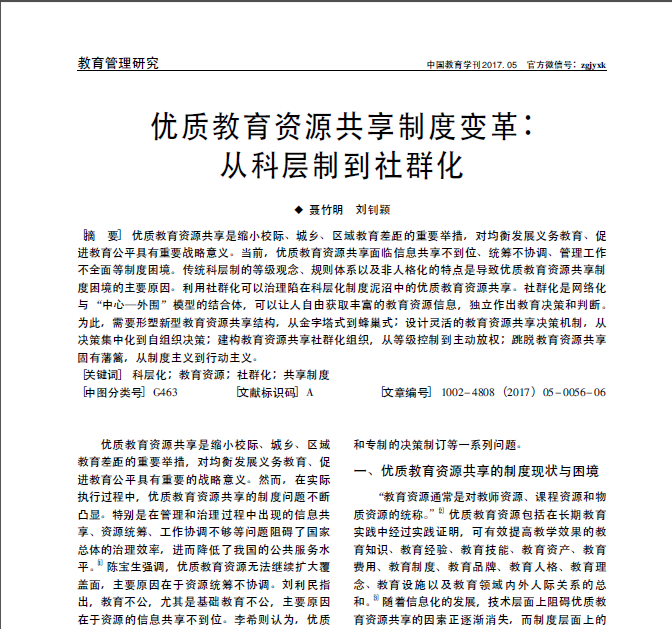 聂竹明、刘钊颖:优质教育资源共享制度变革:从科层制到社群化