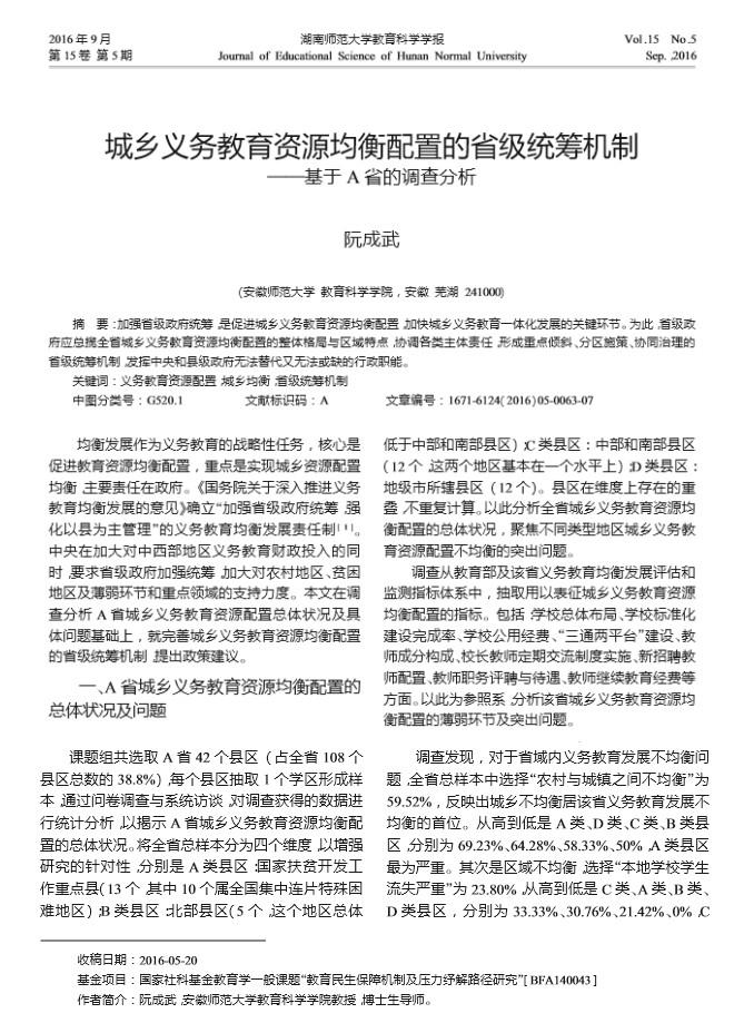 阮成武:城乡义务教育资源均衡配置的省级统筹机制