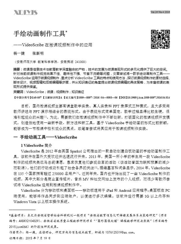杨一捷、张新明:手绘动画制作工具——VideoScribe 在微课视频制作中的应用