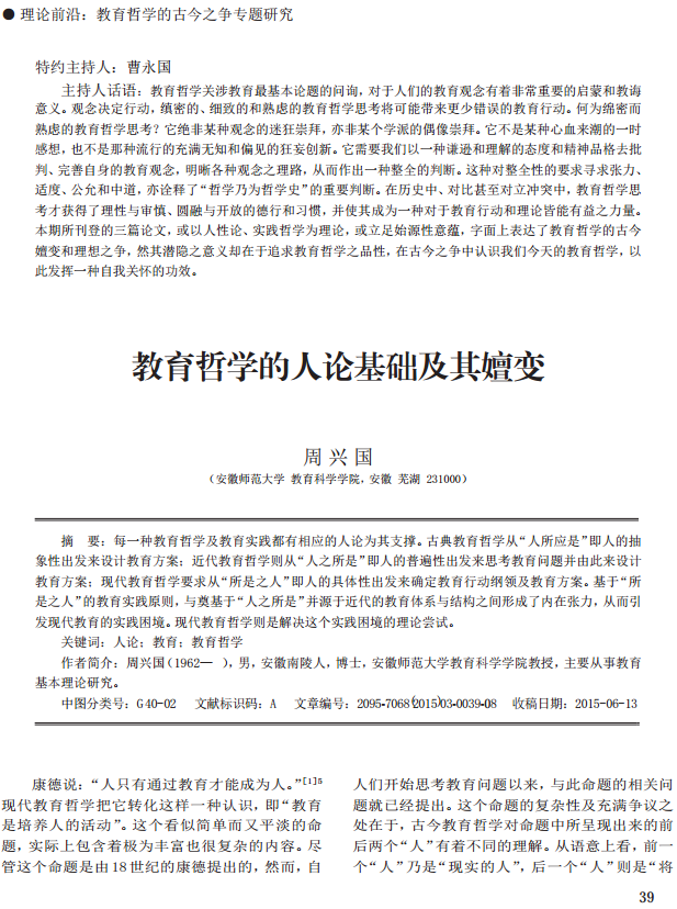 周兴国:教育哲学的人论基础及其嬗变