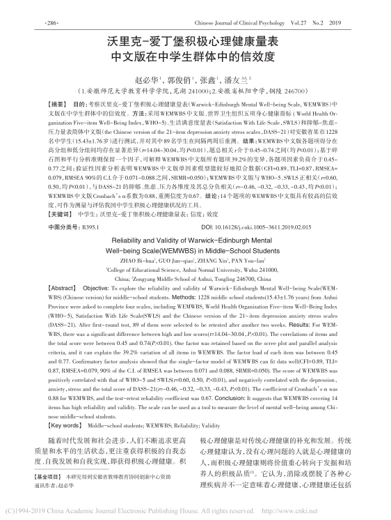 沃里克_爱丁堡积极心理健康量表中文版在中学生群体中的信效度_赵必华.pdf