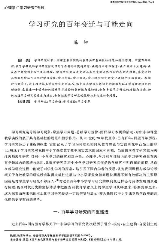 【教师科研】陈娜:学习研究的百年变迁与可能走向