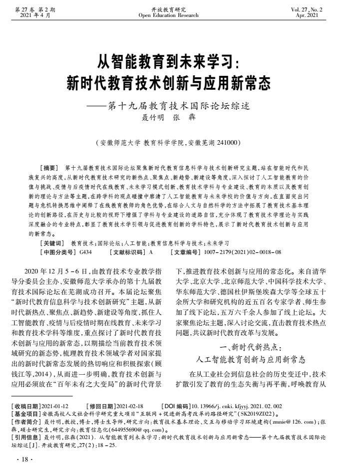【教师科研】聂竹明:从智能教育到未来学习:新时代教育技术创新与应用新常态