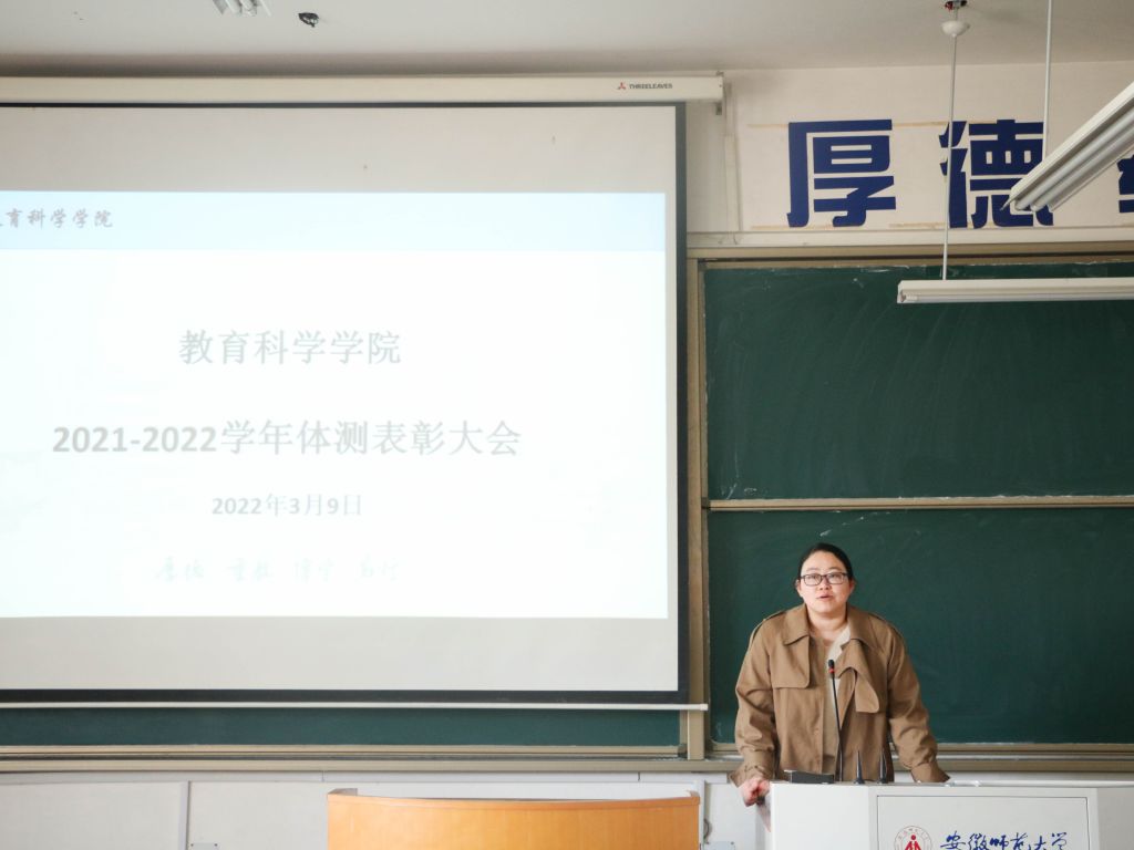 为了促进学生加强体育锻炼,积极实施德智体美劳“五大行动”。3月9日下午,365英国上市官网于田楼8202教室召开2021年-2022学年体测表彰大会。学院党委副书记杜凤、院团委书记程啸、副书记蔡文、21级辅导员张理强、院学生会体育部工作人员以及受表彰的全体同学参加,2020级小学教育专业张琦主持。