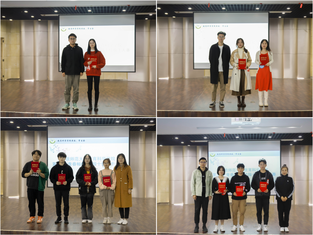 本次大赛中,21级心理健康教育郑晓燕荣获一等奖,二等奖为21级心理健康教育李希雅、22级学前教育易思佳,三等奖为20级教育学王悦晓、20心理学闫密、20级学前教育杨文彬、22级小教张蓓蓓,优秀奖获得者为20学前教育邱子嘎、21级心理学李子怡以及22级心理学王泰戈。