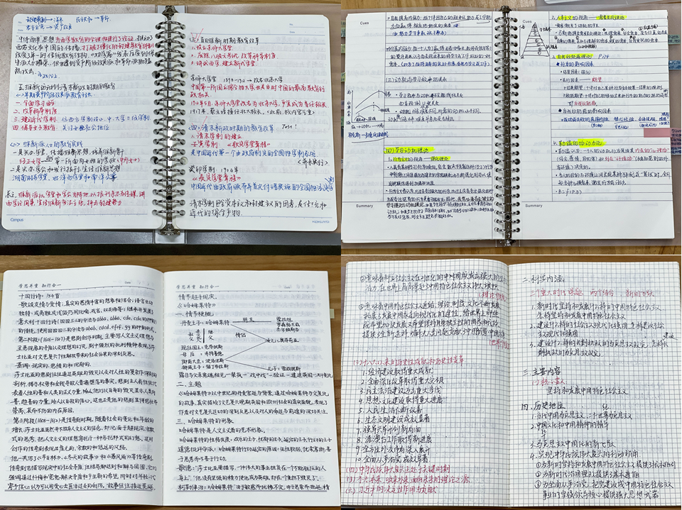 “清晰的笔记不仅有助于同学们课后复习,在回顾知识点时找到解决问题的关键因素或关键环节,更能够举一反三、开拓思维,对所学的知识进行全方位和系统性的描述与分析。”“好记性不如烂笔头。记笔记可以让自己在课堂上更加专心,写一遍的过程也是巩固一遍的过程。上完课看着满满一本的笔记也很有成就感。”其中两位获奖者如是说。