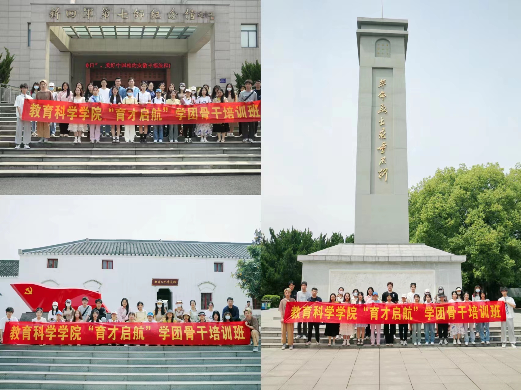 投身实践提素养,踔厉奋发向未来。5月13日上午,“育才启航”学团骨干培训班成员来到无为县红色教育基地开展实践活动,缅怀先烈功绩,赓续红色血脉。大家在新四军第七师纪念馆中,感受皖江儿女和来自四面八方的热血青年为民族解放战争做出的巨大牺牲;在新四军七师师部旧址中,体会革命先烈们经受血与火的洗礼创造出的丰功伟绩;在胡竺冰故居中,学习中国共产党员为民族解放事业栉风沐雨、矢志不渝的英雄气概。