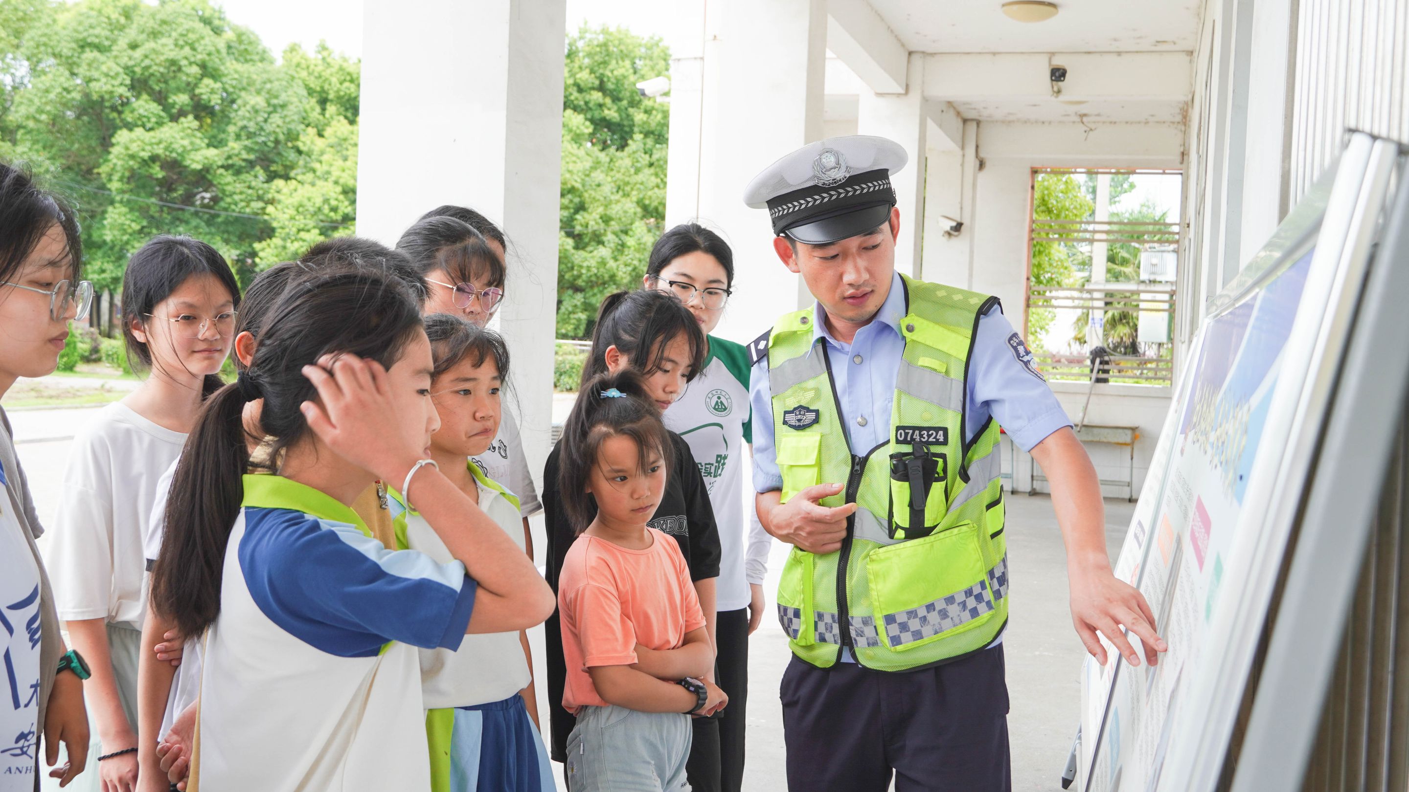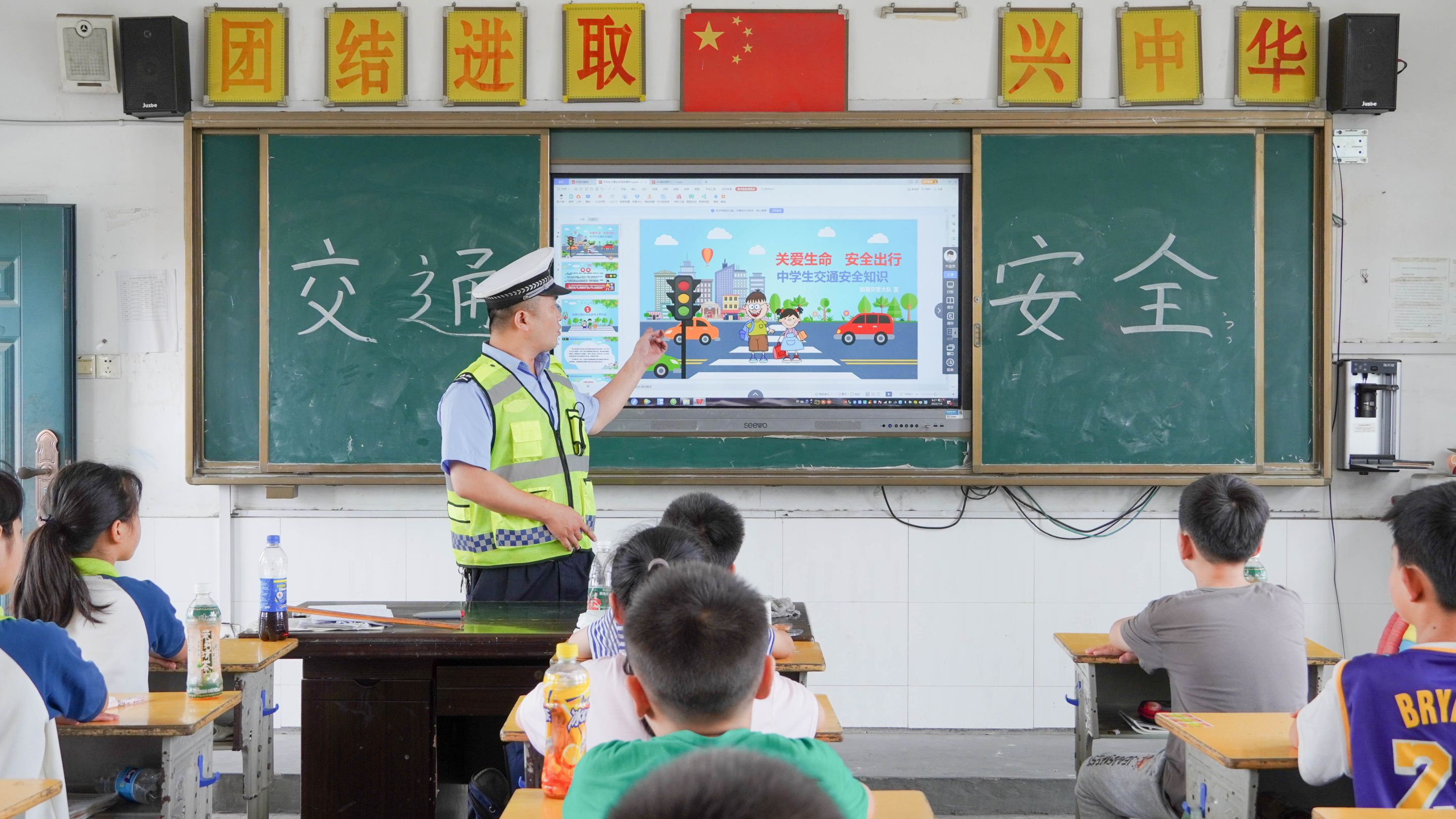 为提高学生交通安全意识,有效预防和减少道路交通事故的发生,和县交警队来到和县城南小学开展交通安全主题宣传教育活动。交警介绍了《中华人民共和国道路交通安全法》的基本内容,并用笔盒模拟汽车刹车的情景,给同学们展示汽车惯性的作用,强调减速慢行的重要性。同时,交警讲解了骑乘自行车与电动自行车的注意事项、乘坐机动车系好安全带的意义,并播放和县交通事故视频,通过实际案例讲解,让同学们认识到交通违法行为带来的危害及后果。在宣传展板前,交警对知识宣讲课进行了补充说明,希望同学们能够知危险会避险,安全文明出行。