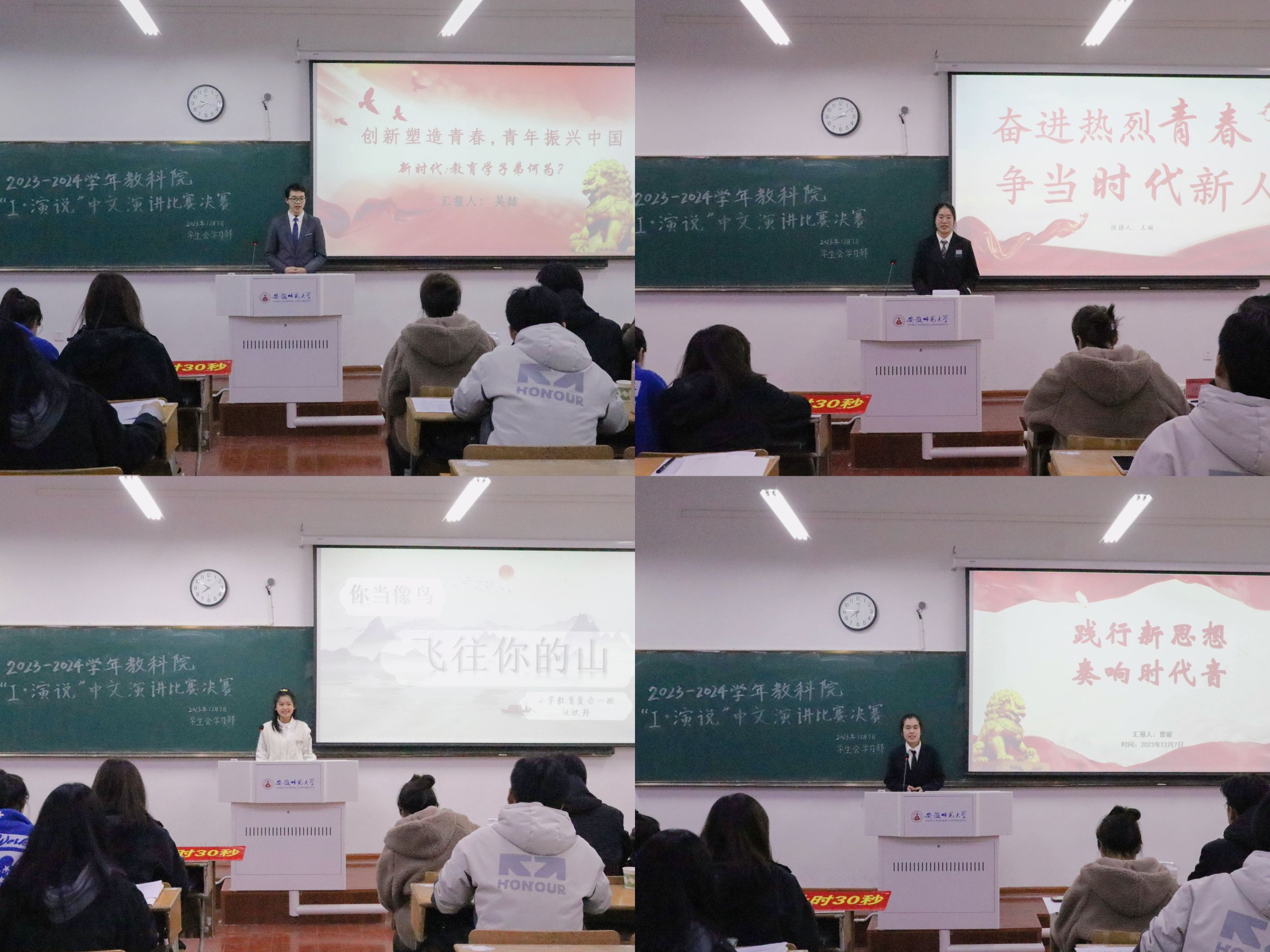 韶华不止,奋斗不息。本次演讲比赛为同学们提供了一个展现自我风采、提升思辨与演讲能力的平台,在丰富同学们校园生活的同时,也提供了锻炼自我、提升综合素质的机会,激励教科学子在新时代翻涌起新的浪潮,扬时代之朝气,奏青春之乐章。