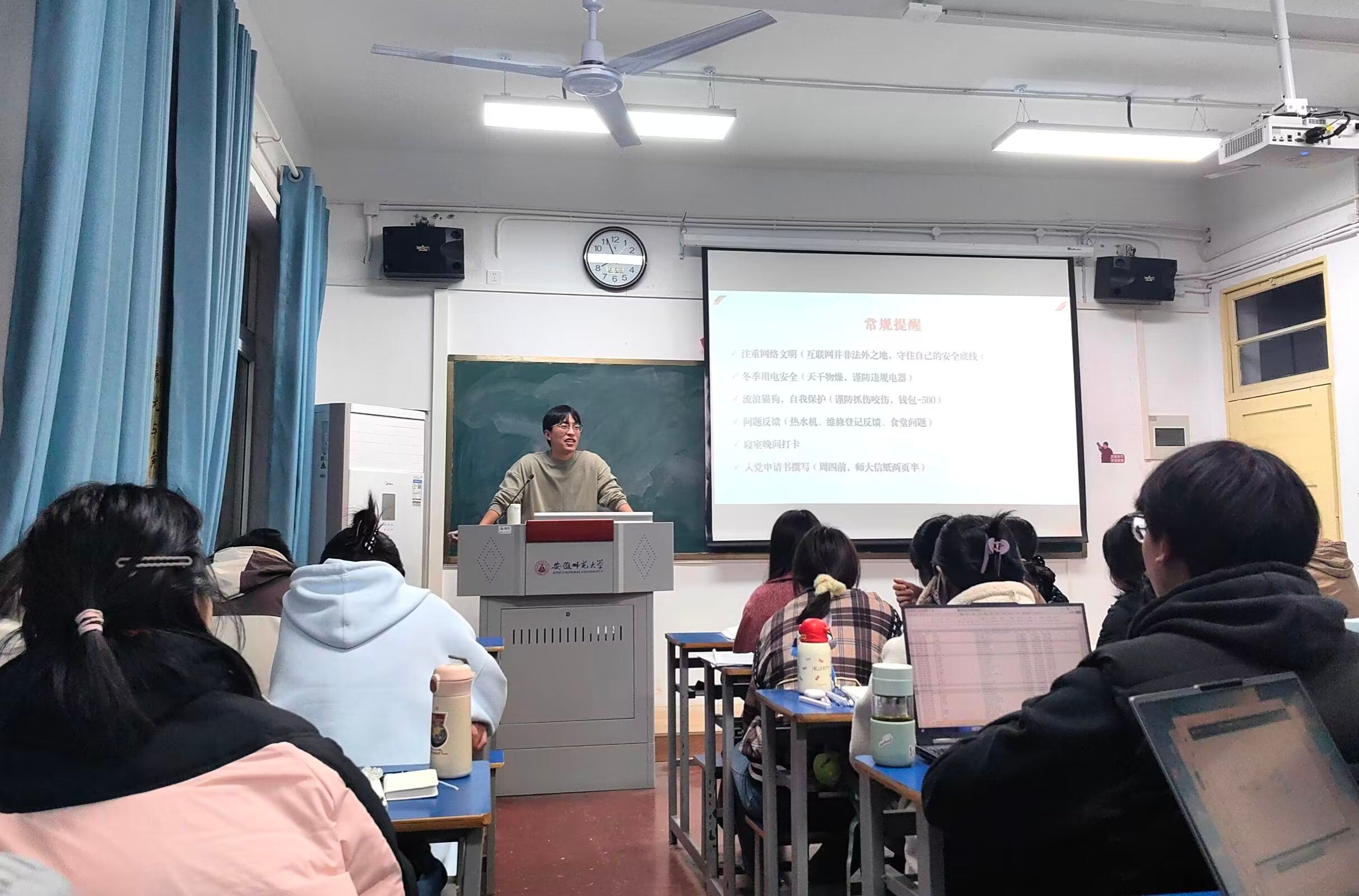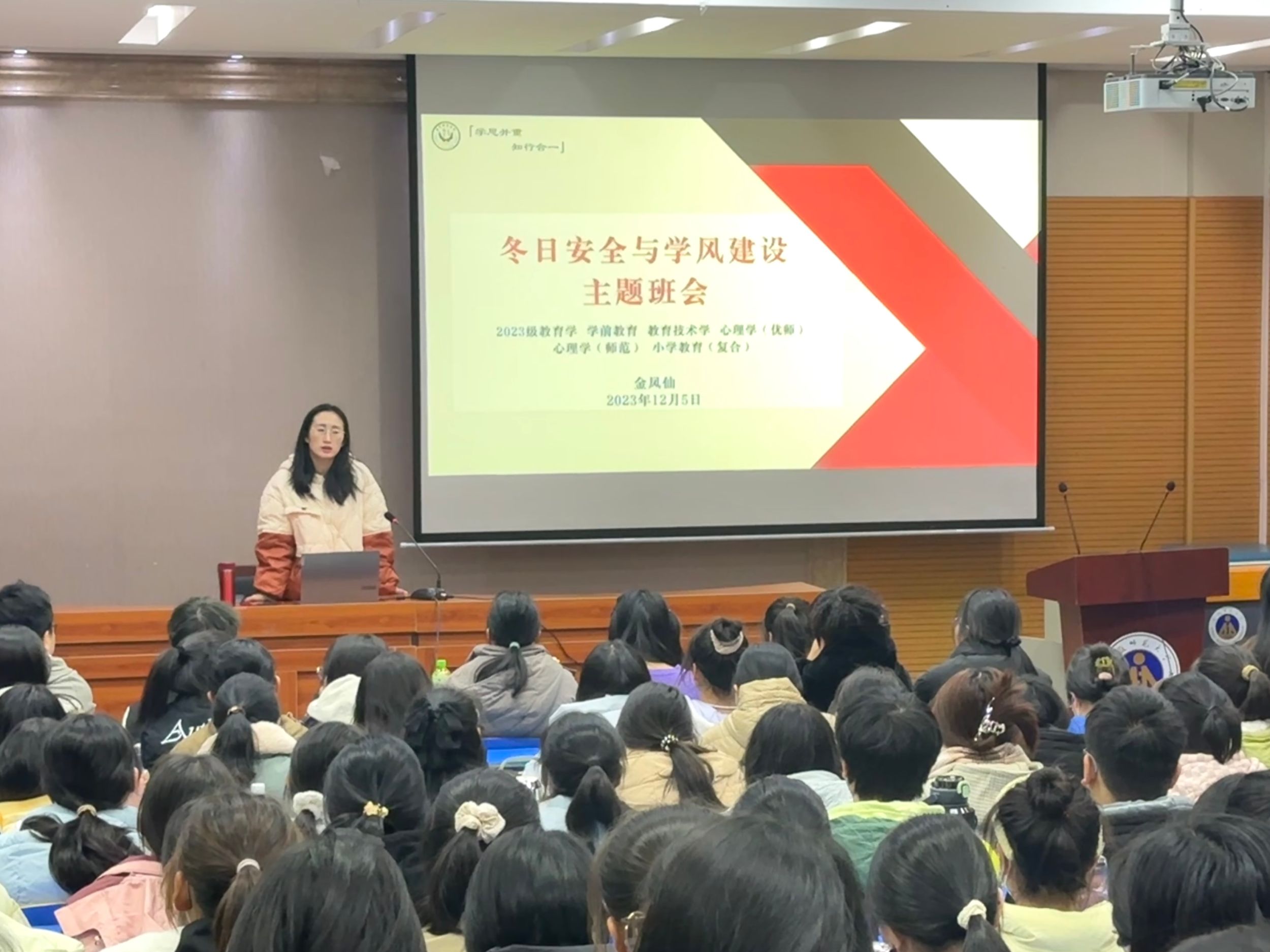 为保障学生冬日安全,建设自律、踏实的优良学风,12月5日晚,365英国上市官网于天门山校区开展2023级本科生“冬日安全与学风建设”主题班会。会议由2023级本科生辅导员金凤仙、刘玉瑾主持,2023级全体本科生参与。