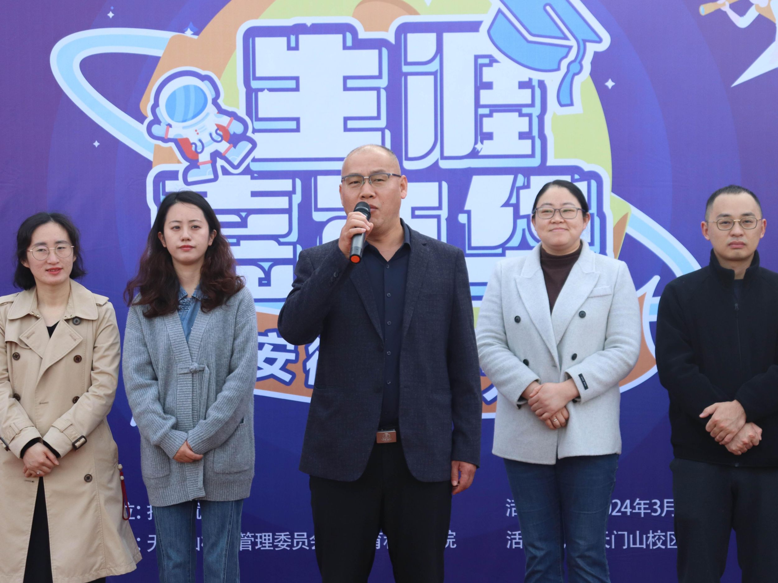 活动伊始,主持人介绍了此次活动的开展流程和重要意义。杜凤指出,学校不断丰富生涯教育与就业指导体系,将生涯育人与就业育人贯穿人才培养全过程,激励大家利用好各类资源和平台,积极投入本次生涯活动体验,牢固树立规划意识,加深自我认知和职业认知,科学合理安排大学生活,不断提高自己的综合能力和核心竞争力。随后罗振宣布本次生涯嘉年华活动启动。