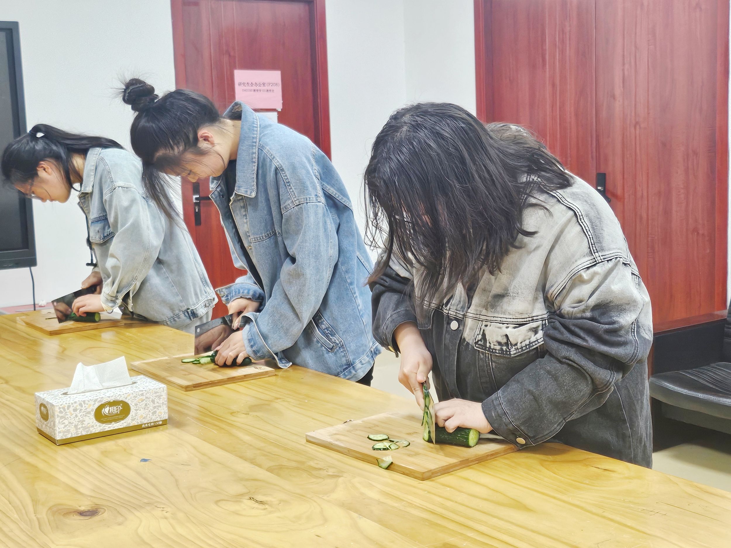 本次厨艺大赛分为初赛和决赛两个环节,天门山校区初赛于2024年4月14日下午在北教学楼102举行,赭山校区初赛于4月17日下午在田楼B座F207举行。参赛选手分组入场,回答评委提出的有关烹饪的问题并展示刀工,最终选出优胜者进入决赛。