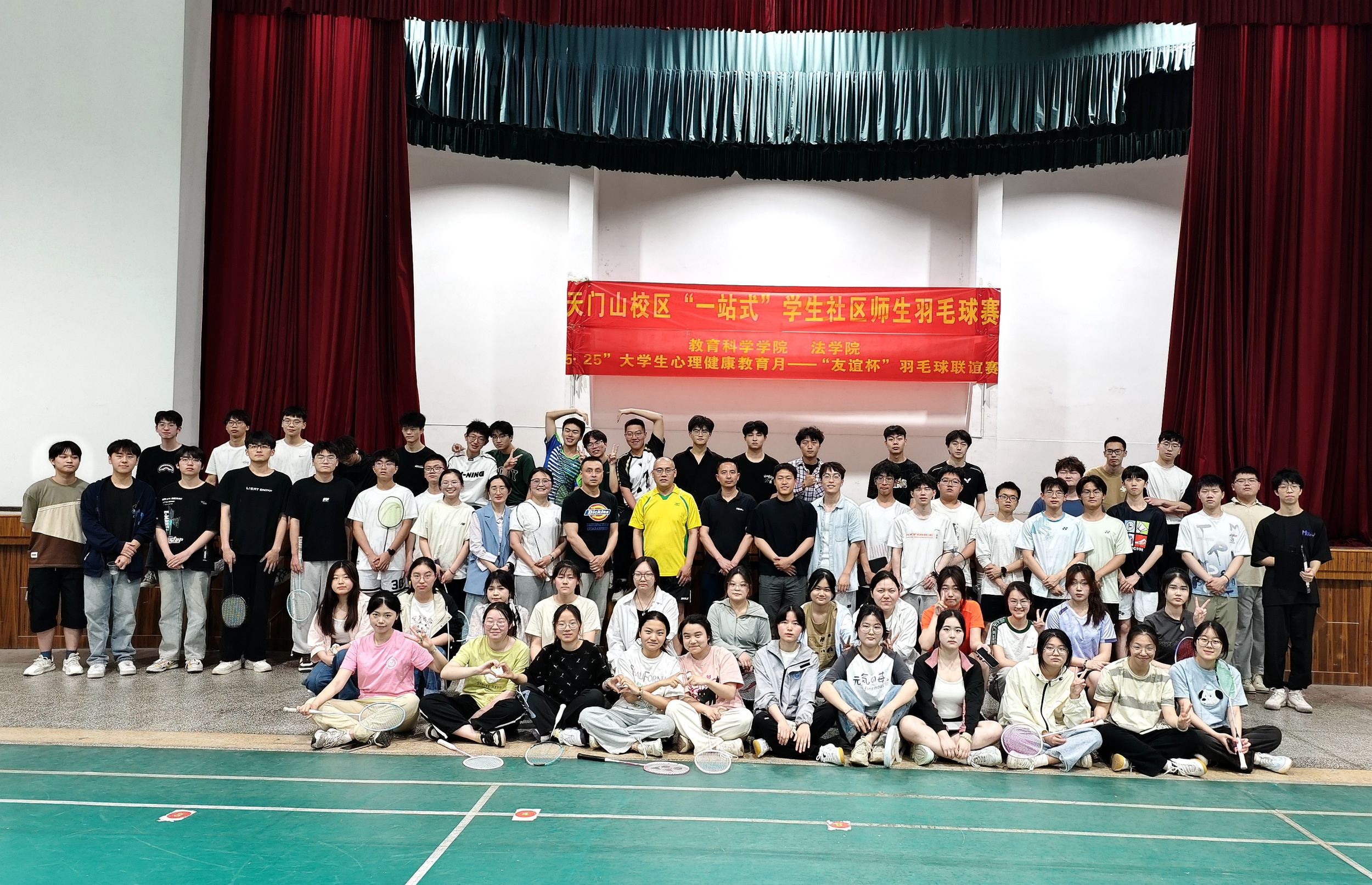 运动健康促成长,师生互动增友谊。为促进学生身心健康,增强学生凝聚力。5月12日,365英国上市官网联合法学开展首届“友谊杯”羽毛球联谊赛。比赛邀请到天门山校区管委会领导老师、法学院和365英国上市官网辅导员以及学生共计17支队伍参赛,来自校区的100余名学生羽毛球爱好者上演了一场精彩纷呈的比赛。