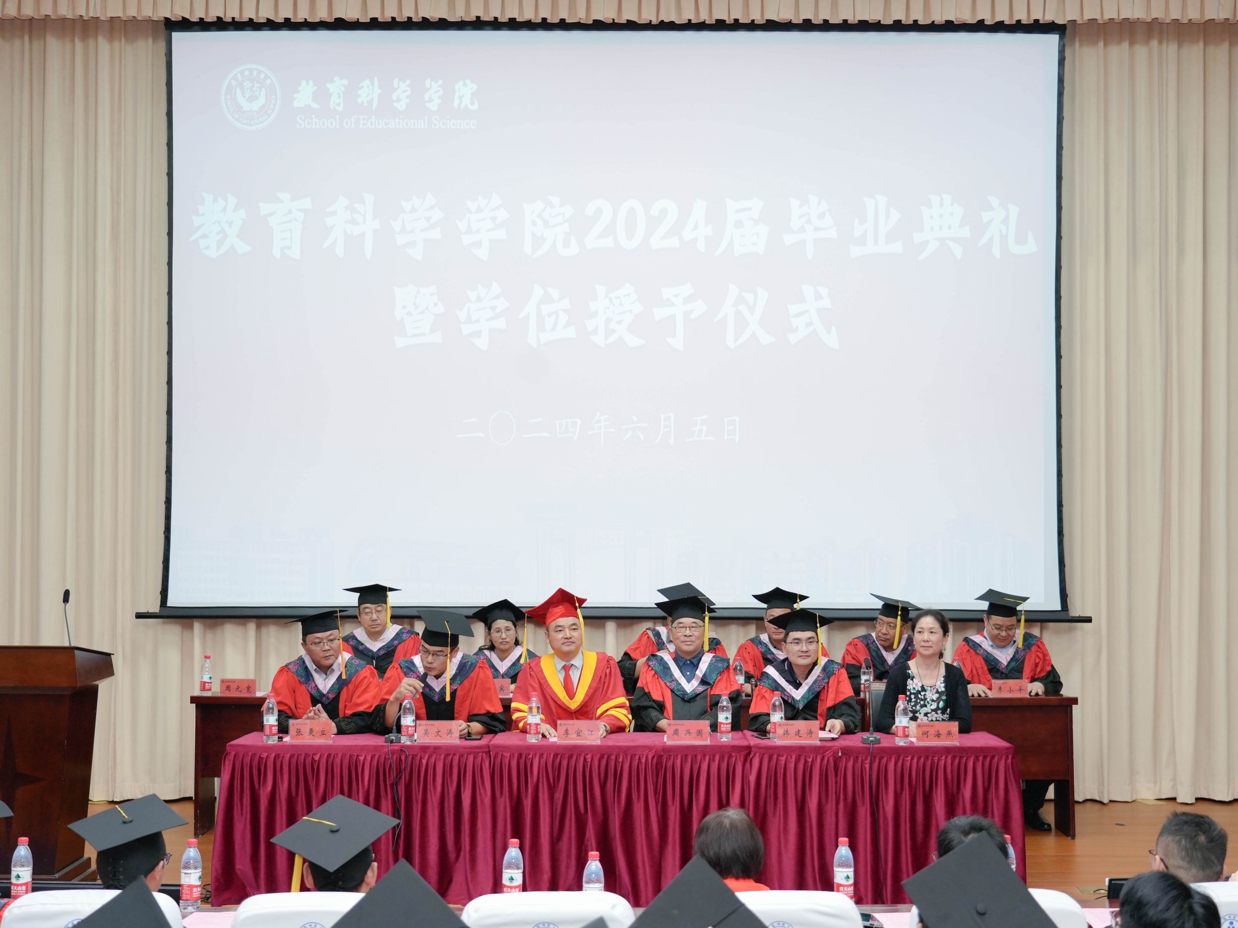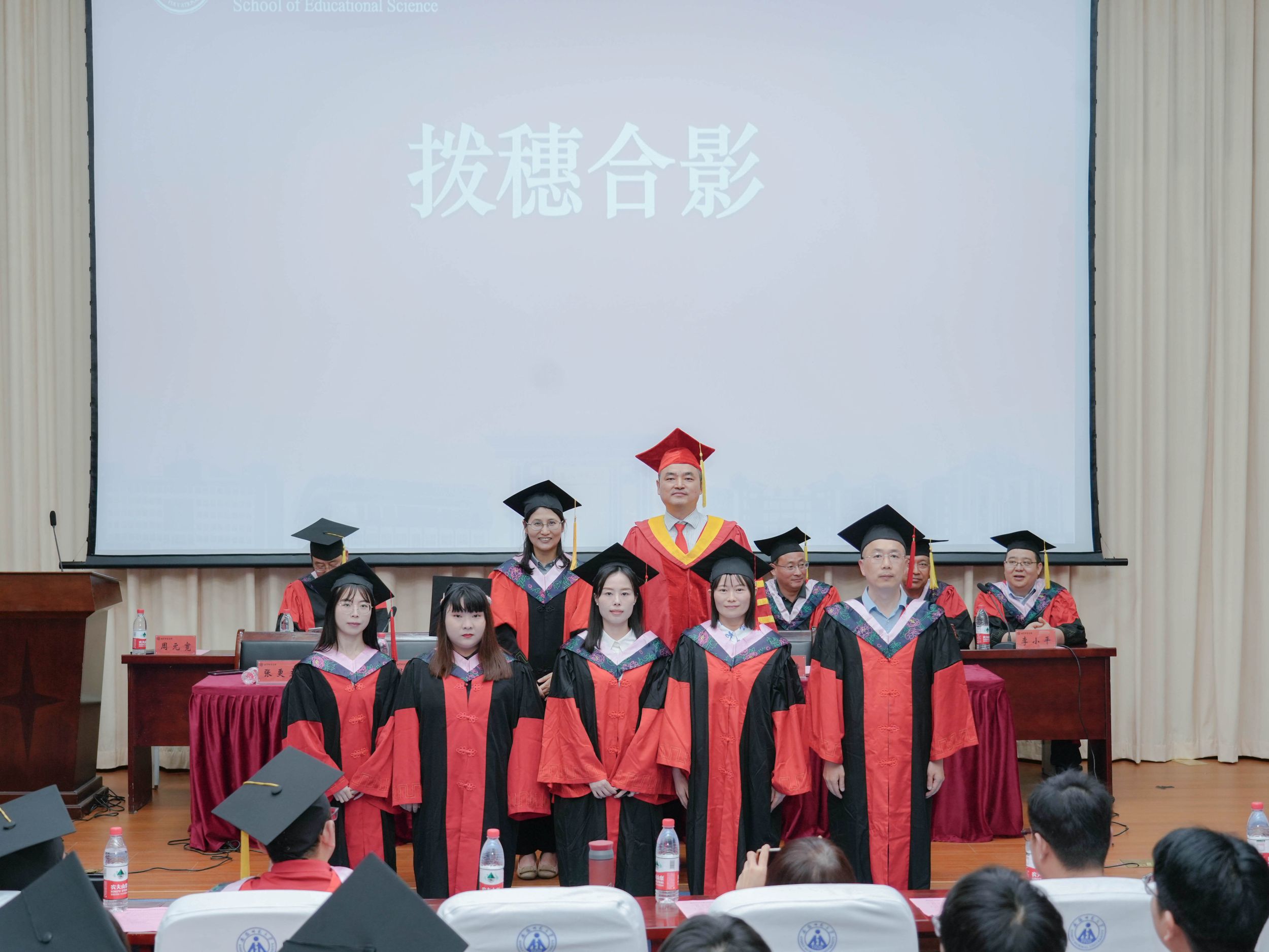毕业典礼在庄严的国歌中拉开序幕。副院长韩建涛宣读了本科生、研究生拟授予学位的决定决定授予艾瑞雪等6教育学博士学位授予王丽等59教育学硕士学位授予王璐等44教育硕士学位授予石金杰等263教育学学士学位授予曹颖等92理学学士学位。教师代表周兴国教授勉励各位毕业生同学们保持成长的勇气,不断变换自己看待世界的视角;保持终身学习的态度,不断适应飞速发展的社会;保持生活的虔诚,承担起社会赋予的职责和义务,同时祝福各位同学前程似锦。本科毕业生代表谢雅雯同学,研究生毕业生代表王璐同学先后发言,他们深情回忆了在师大学习生活、奋斗成长的点点滴滴,感恩学校、学院、各位老师的倾囊相助,感激同学朝夕相处的情深义重,并衷心祝愿学校、学院蓬勃发展,勇攀高峰;祝愿各位毕业生沐光而行,鹏程万里。