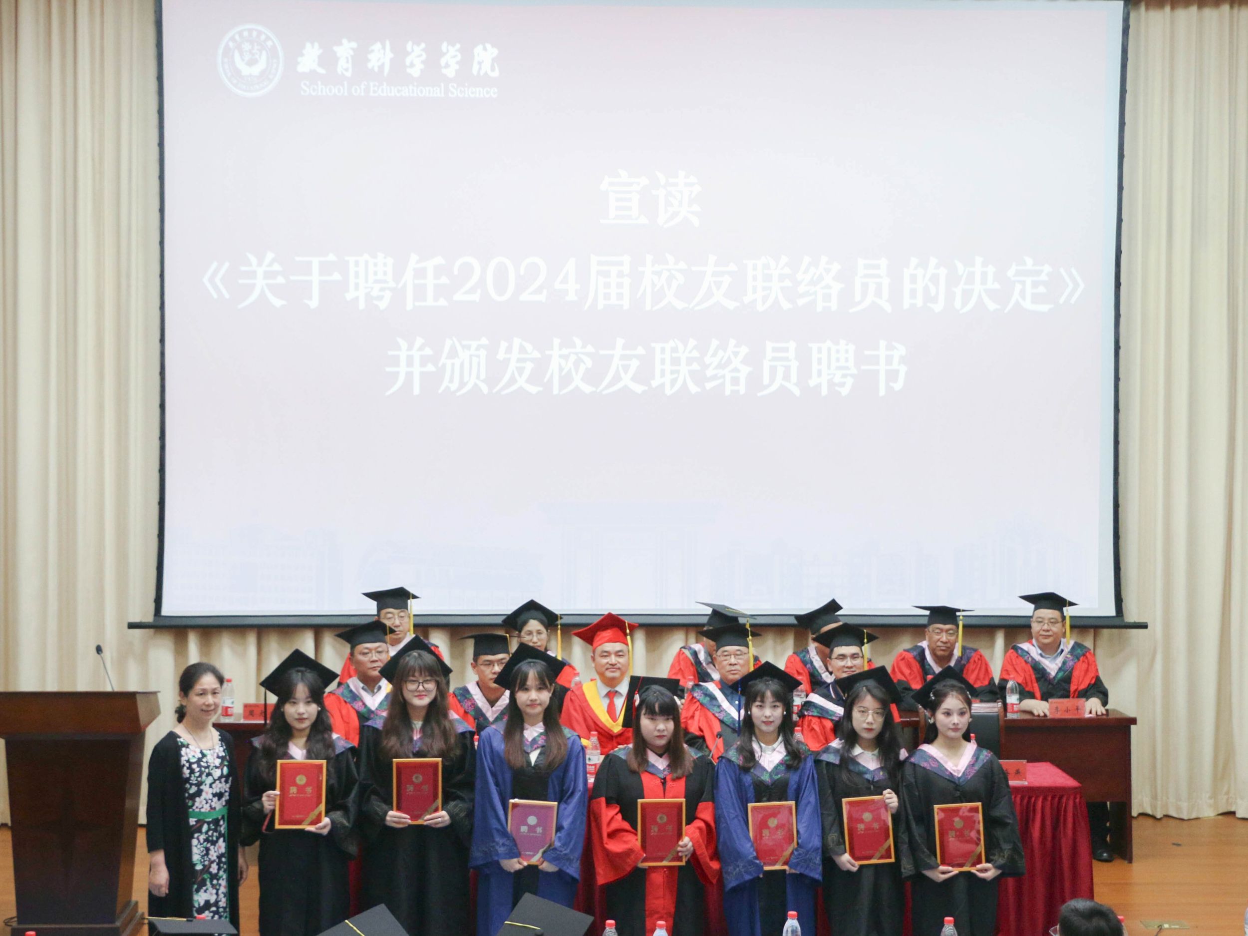 随后,副院长何海燕为校友联络员代表颁发聘书各位老师为毕业生拨穗并合影留念。