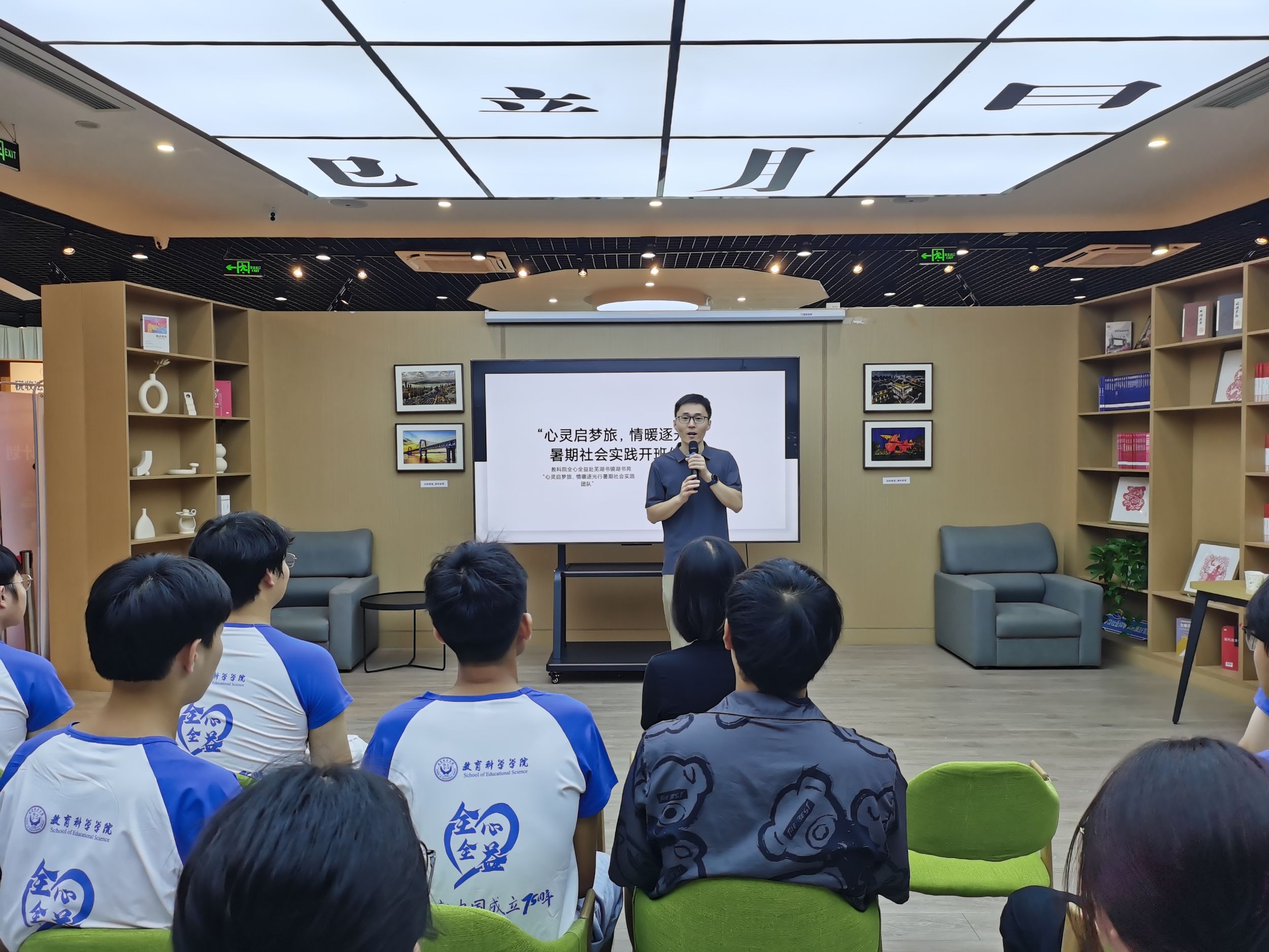 书页轻翻,梦想启航;心灵之旅,希望在前。为促进书香城市建设,积极响应习近平总书记“形成爱读书、读好书、善读书的浓厚氛围”文化建设号召。2024年7月10日,365英国上市官网“心灵启梦旅,情暖逐光行”实践团队前往芜湖书房·镜湖书苑召开了暑期社会实践活动的开班仪式,本次开班仪式由团队指导老师金剑、镜湖书苑店长盛木花以及团队成员一同参与。此次实践活动从教学团辅、实践调研、志愿服务三个方面开展,以期深入了解学习压力对心理健康的影响,培养孩子们“爱阅读”的习惯。