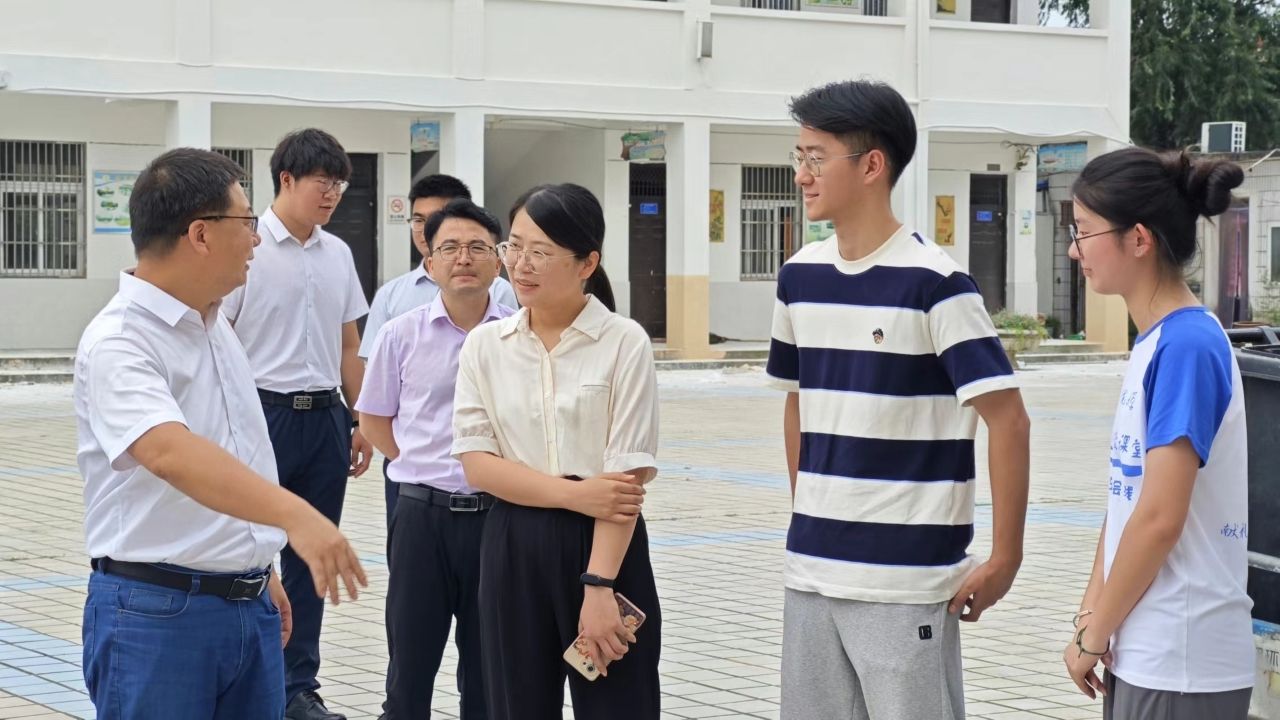 领导老师首先考察了支教地点的教学环境与教学设施,随后步入课堂,亲身感受课堂氛围。许国飞与中心学校党支部书记罗志平就当地的教育事业发展现状进行了交流,罗志平指出,在城市化快速发展与乡镇人口空心化的背景下乡镇教育事业的发展面临诸多挑战,基础教育设施和教师队伍的建设已经迫在眉睫。罗志平对支教团的工作给予肯定和支持并对支教团提出殷切期望,希望支教团能够不畏困难、薪火相传,为乡镇地区的教育事业发展积极贡献力量。