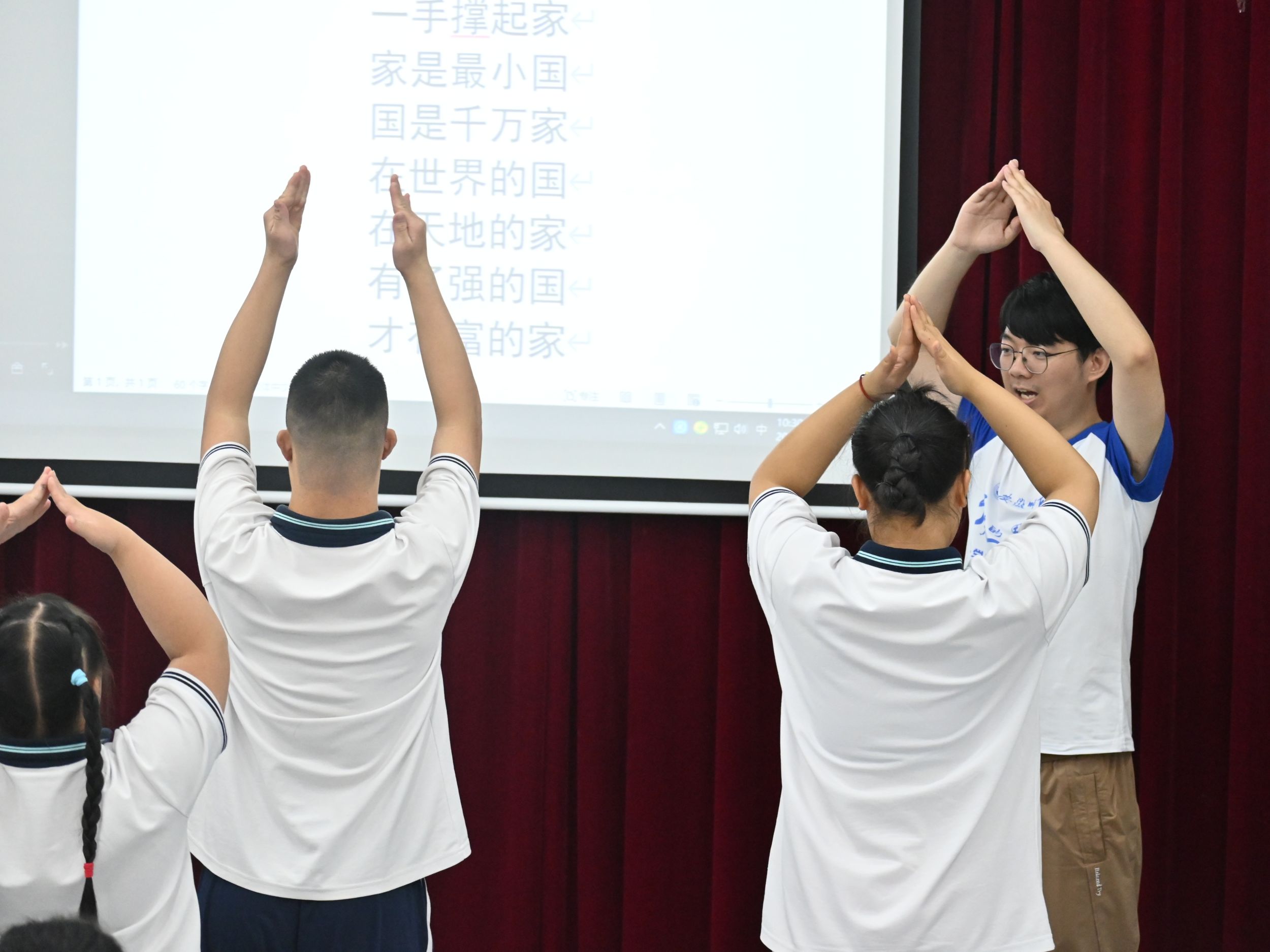 “一玉口中国,一瓦顶成家。”《国家》手语舞的学习将对普通话的理解与运用实践相结合,实践团队联系智力障碍青少年群体的特殊性,采用普通话讲解、队员分解示范、视频教学等形式教授手语舞,以此进行爱国主义启蒙教育,提升智力障碍青少年群体的肢体语言表达能力,丰富增强同学们的文化体验,深化爱国主义认知,致力于让培智学校的同学们在手语舞的学习中收获成长的快乐,助力普通话的推广与运用。