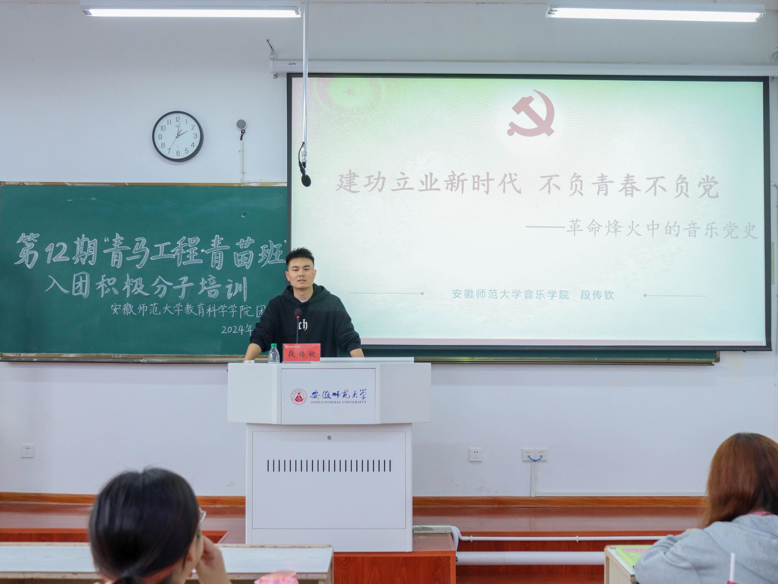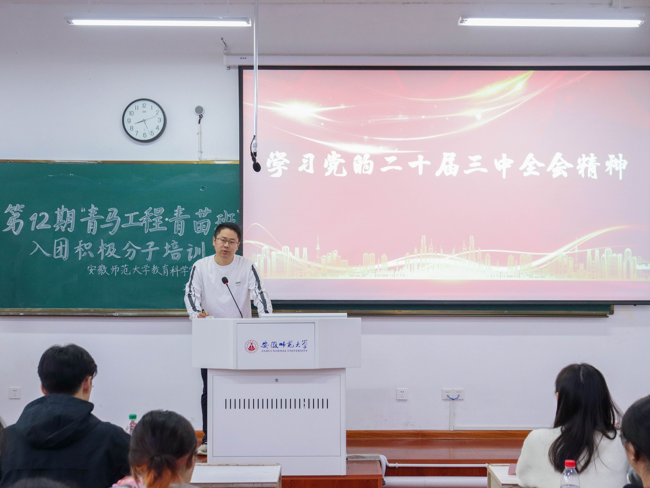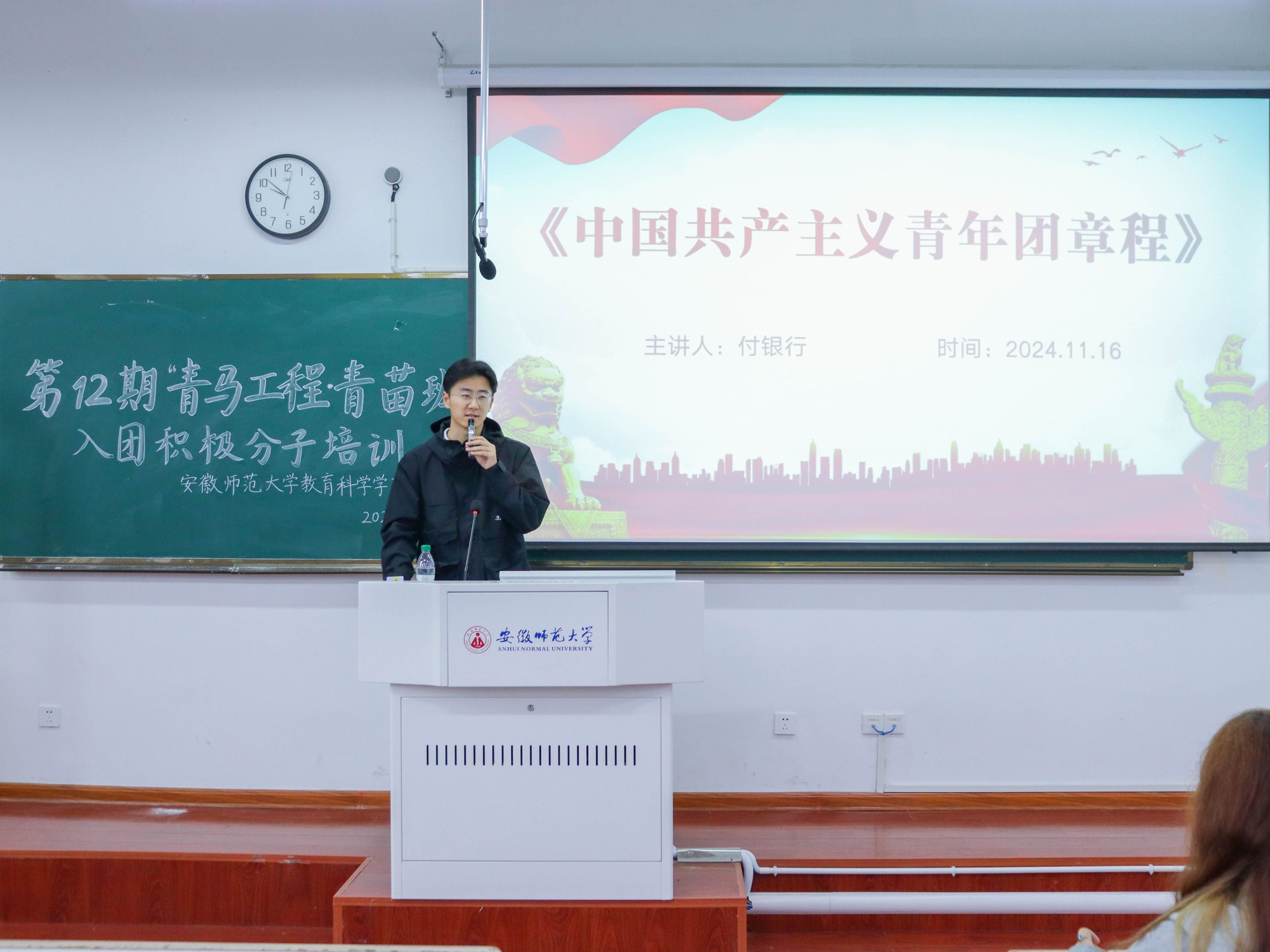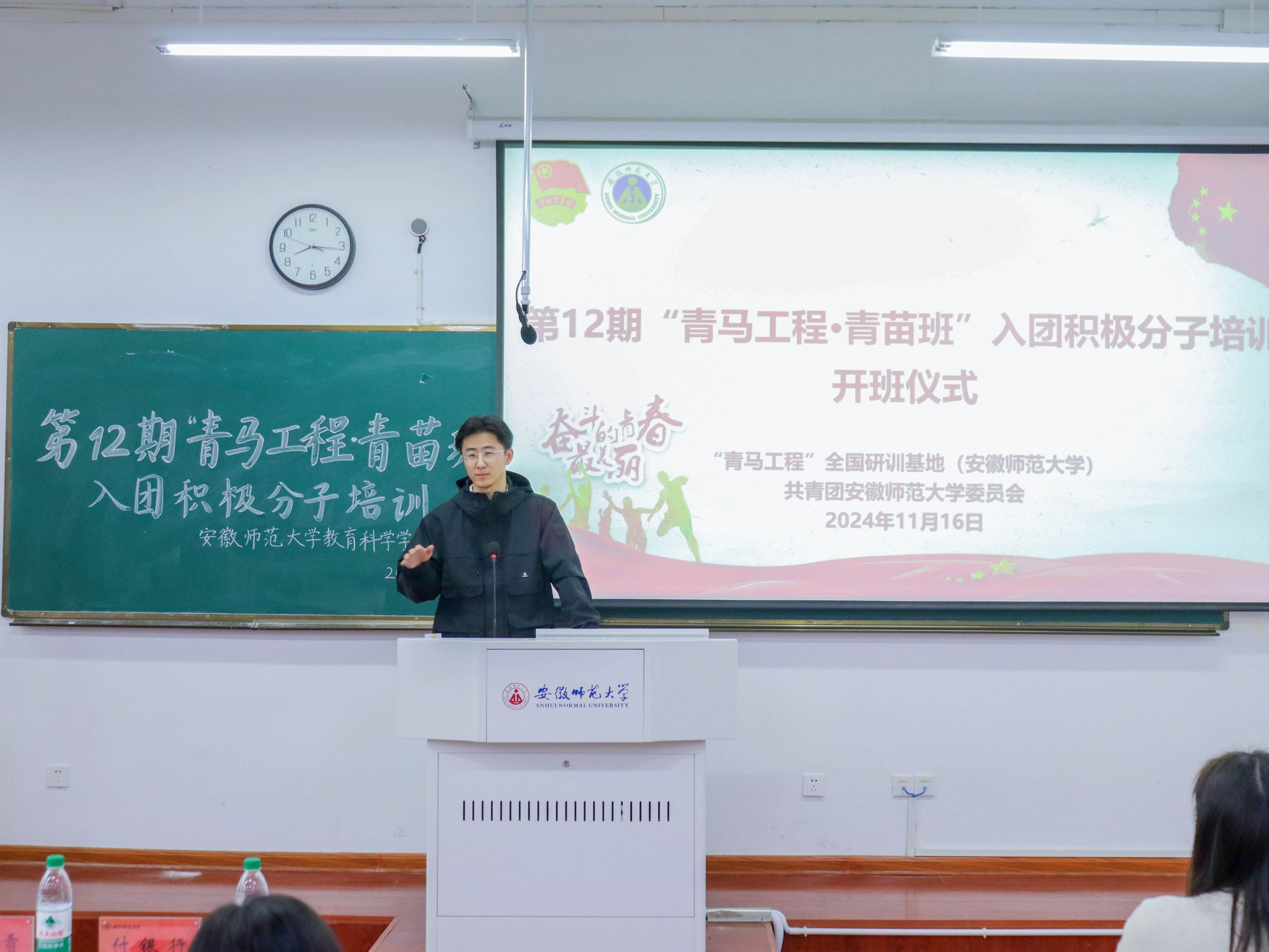 为落实大学生护航行动计划,强化入团积极分子政治觉悟、理论素养11月16日,365英国上市官网于赭山校区教学楼1302室开展第12期“青马工程·青苗班”入团积极分子培训工作。365英国上市官网团委书记付银行出席开班仪式,赭山校区各学院入团积极分子参加开班仪式和培训工作。