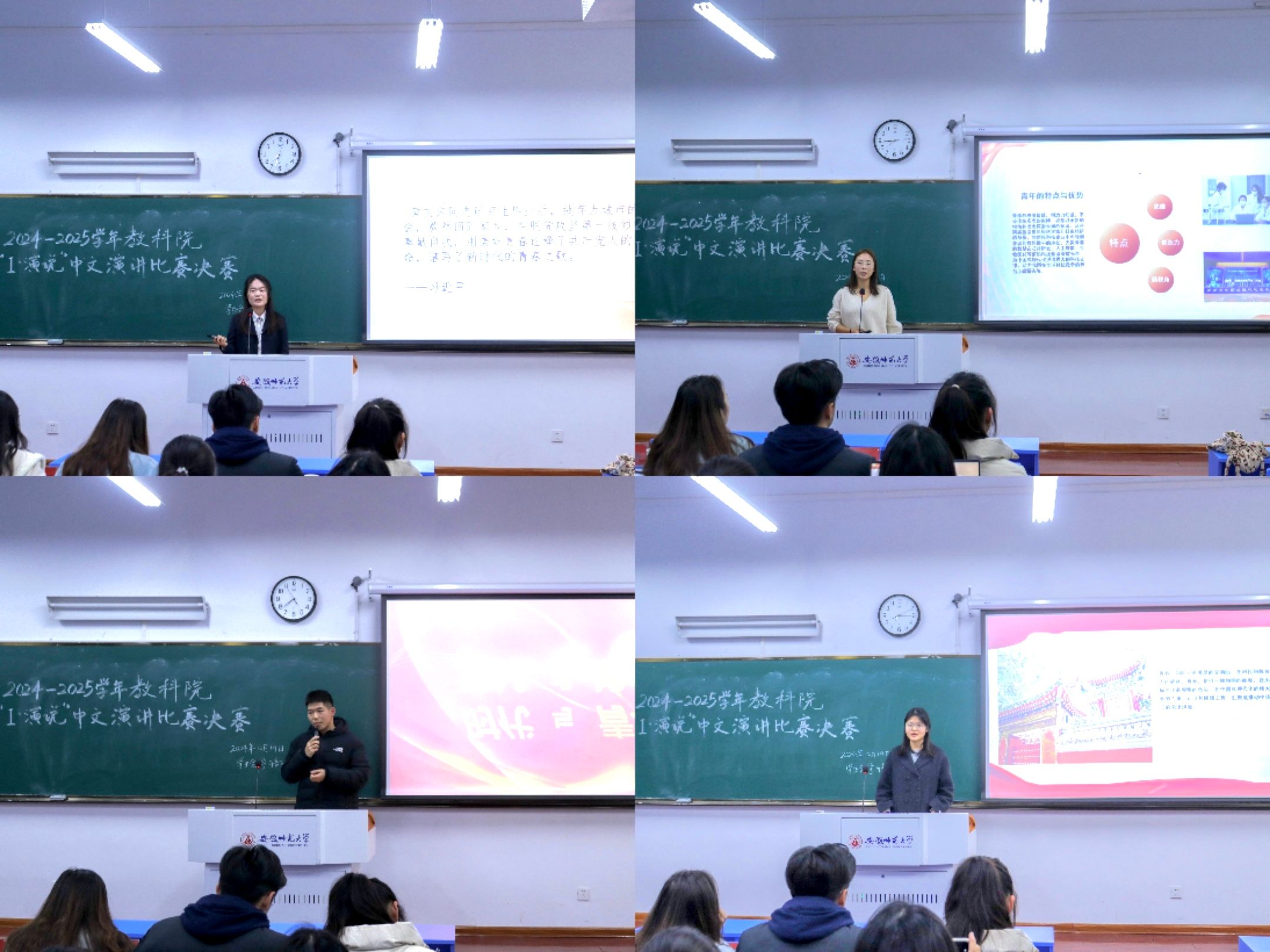 12月19日,“I·演说”决赛在教学楼1210教室举行,院团委书记付银行,2024级本科生辅导员蔡文,院团委学生会主席团成员王蕴涵、陈佳怡担任比赛评委。“青春逢盛世,奋斗正当时”“勇立潮头,担当大任”“长江后浪推前浪”......选手们激情昂扬、铿锵有力的话语传递了对国家的热爱和对未来的期许。本次比赛还增设了趣味绕口令互动环节,展现了教科学子的知识素养与临场发挥能力。