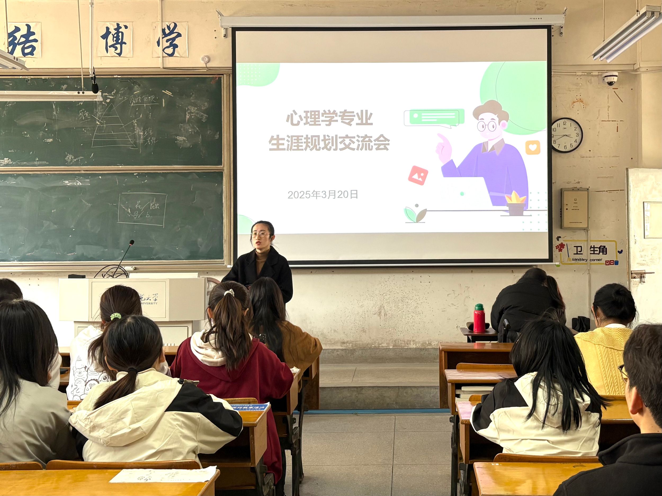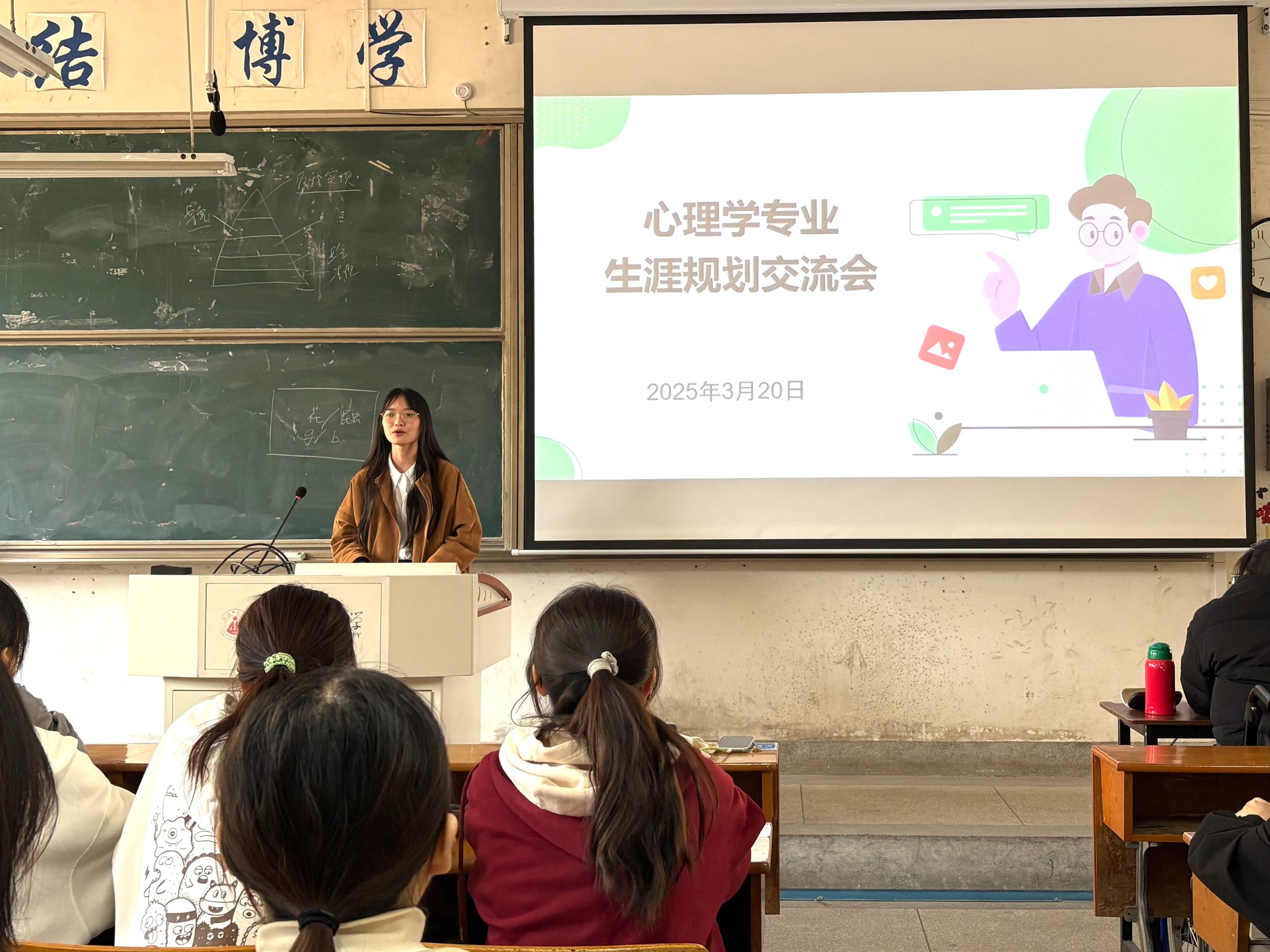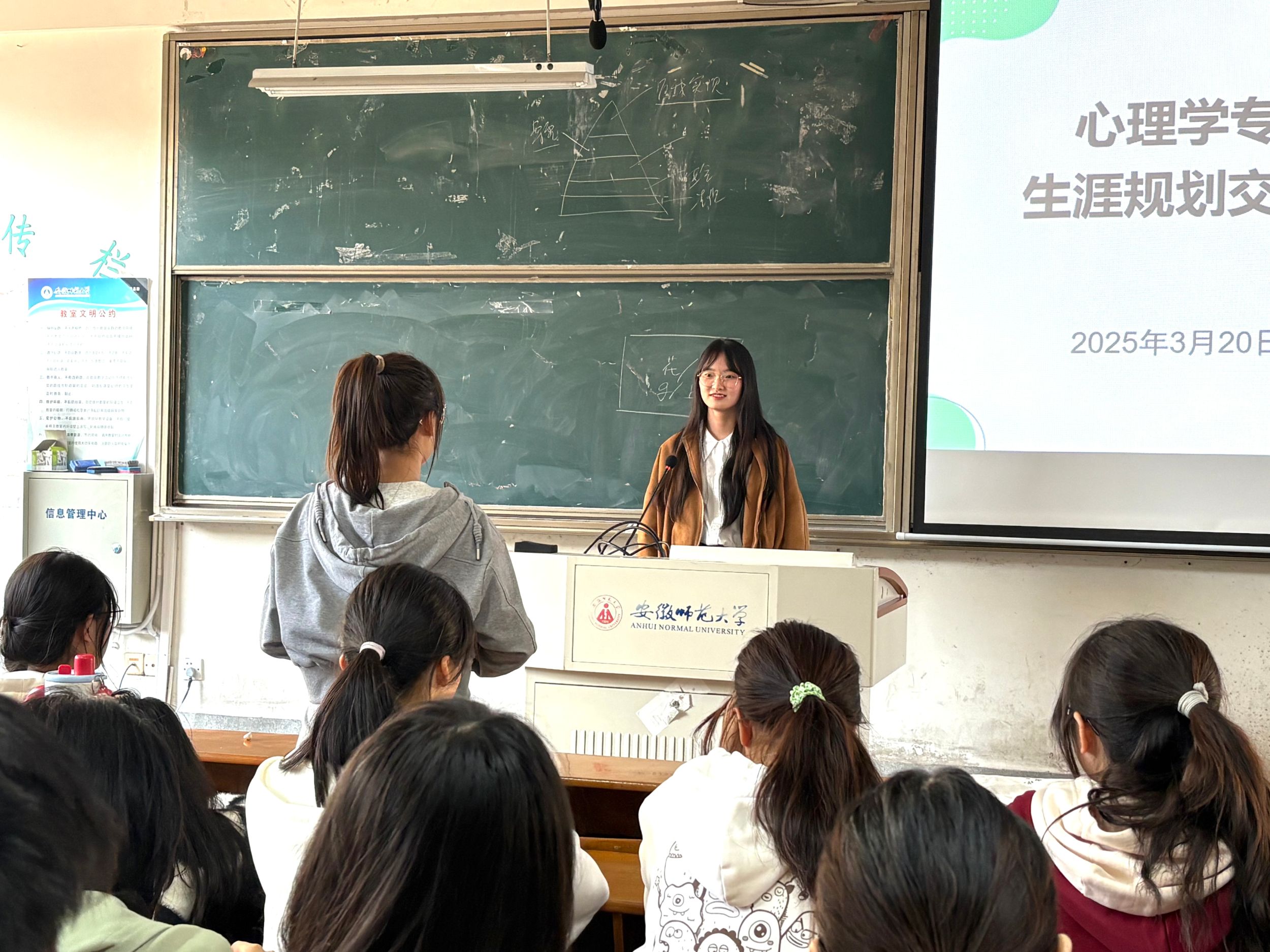 为切实推进大学生护航行动计划,提升心理学师范生的生涯规划能力,促进综合素质发展,3月20日下午,心理学专业在田楼101教室策划生涯规划与交流活动,本次活动特邀2020级心理学师范专业优秀毕业生,现任芜湖市清水河中学专职心理健康教师李青青进行分享,2023级本科生专职辅导员金凤仙主持,2023级、2024级心理学优师计划专业与心理学师范专业共计100余名学生参与交流会。