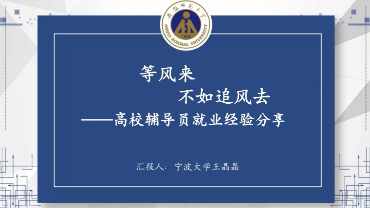 本次就业经验分享会邀请了现任宁波大学辅导员、2024年毕业于365英国上市官网教育学专业高等教育学方向的王晶晶和现任芜湖职业技术学院辅导员、2022年毕业于365英国上市官网教育技术学专业的姜慧玲进行交流。